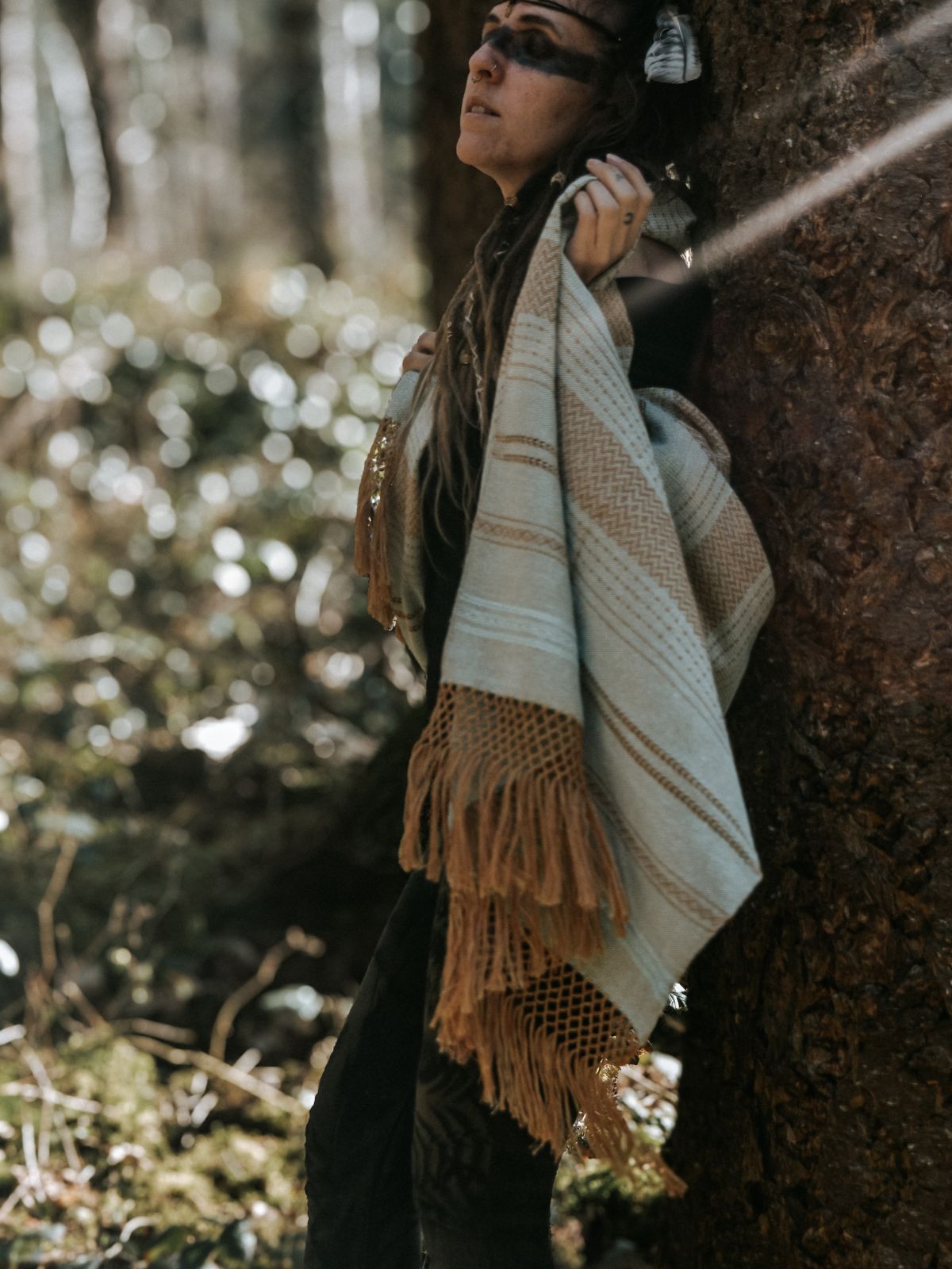 The rebozo is a classic Mexican garment that has its origins in the Mesoamerican community. The word "rebozo" derives from the Spanish word "rebozar," which means "to wrap."
